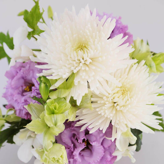 [Main flower materials] Chrysanthemum (Anastasia), lisianthus (white or exo-lavender), etc.