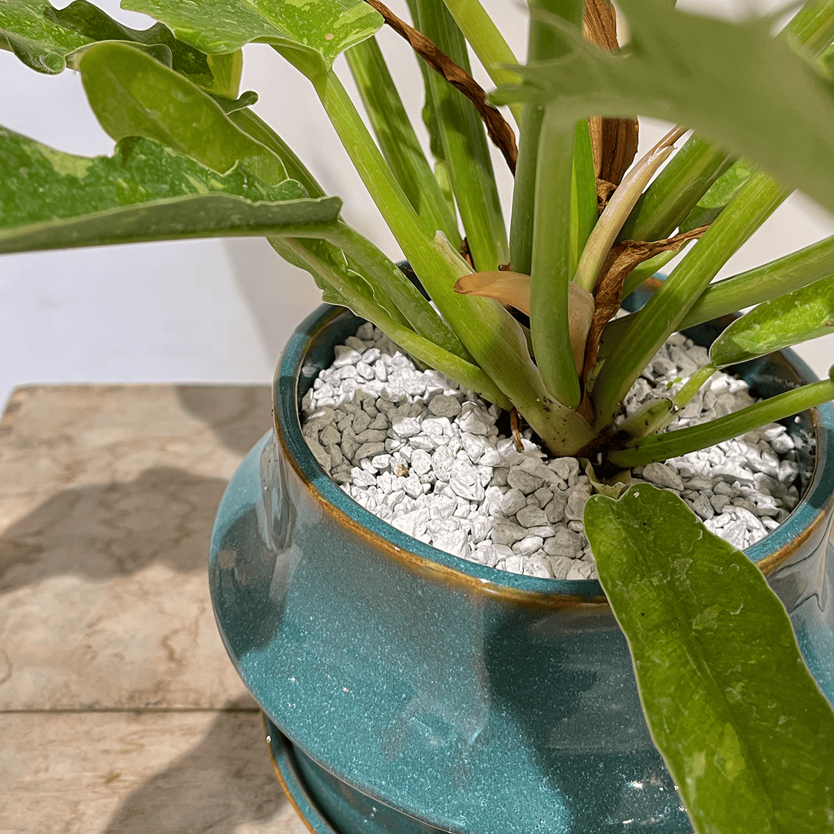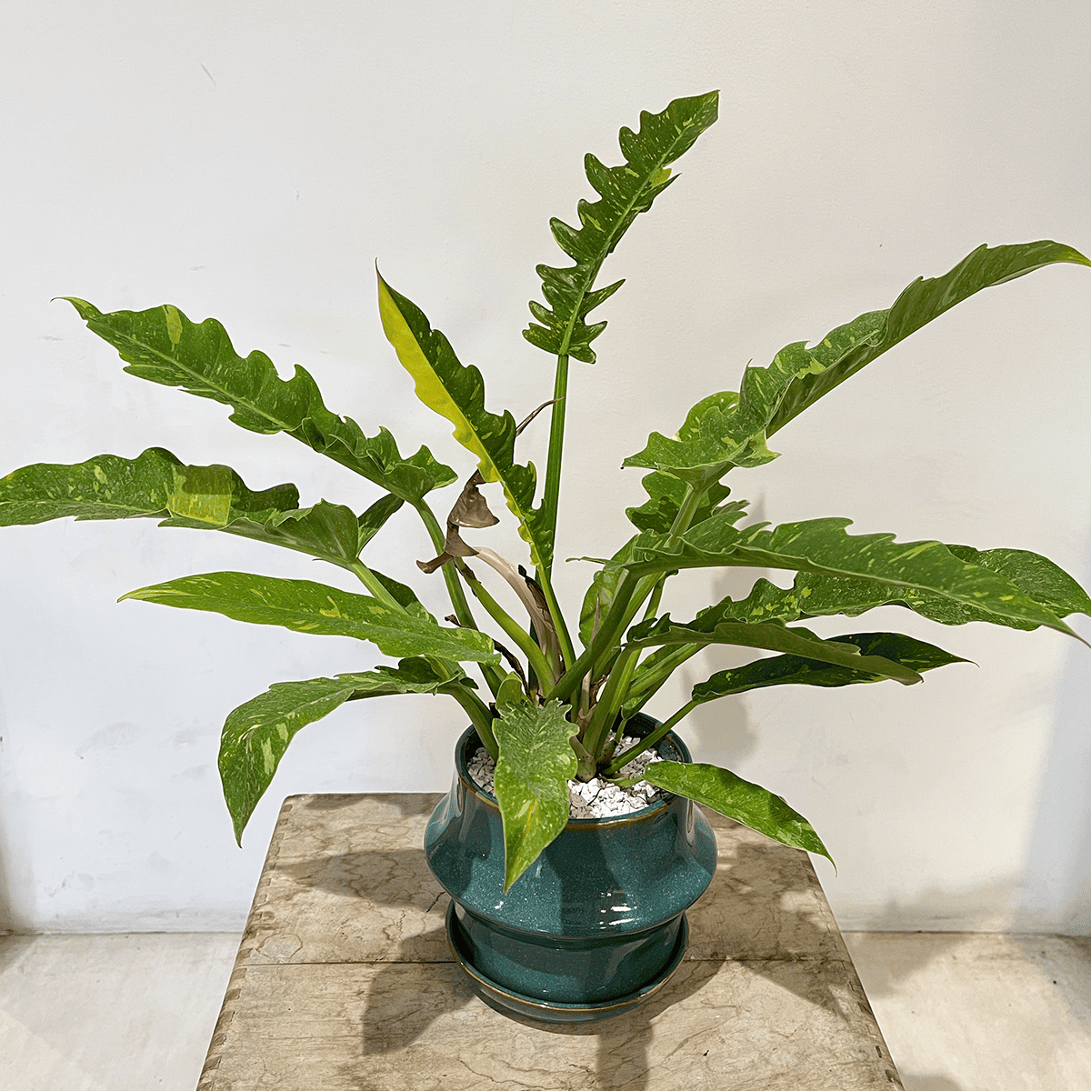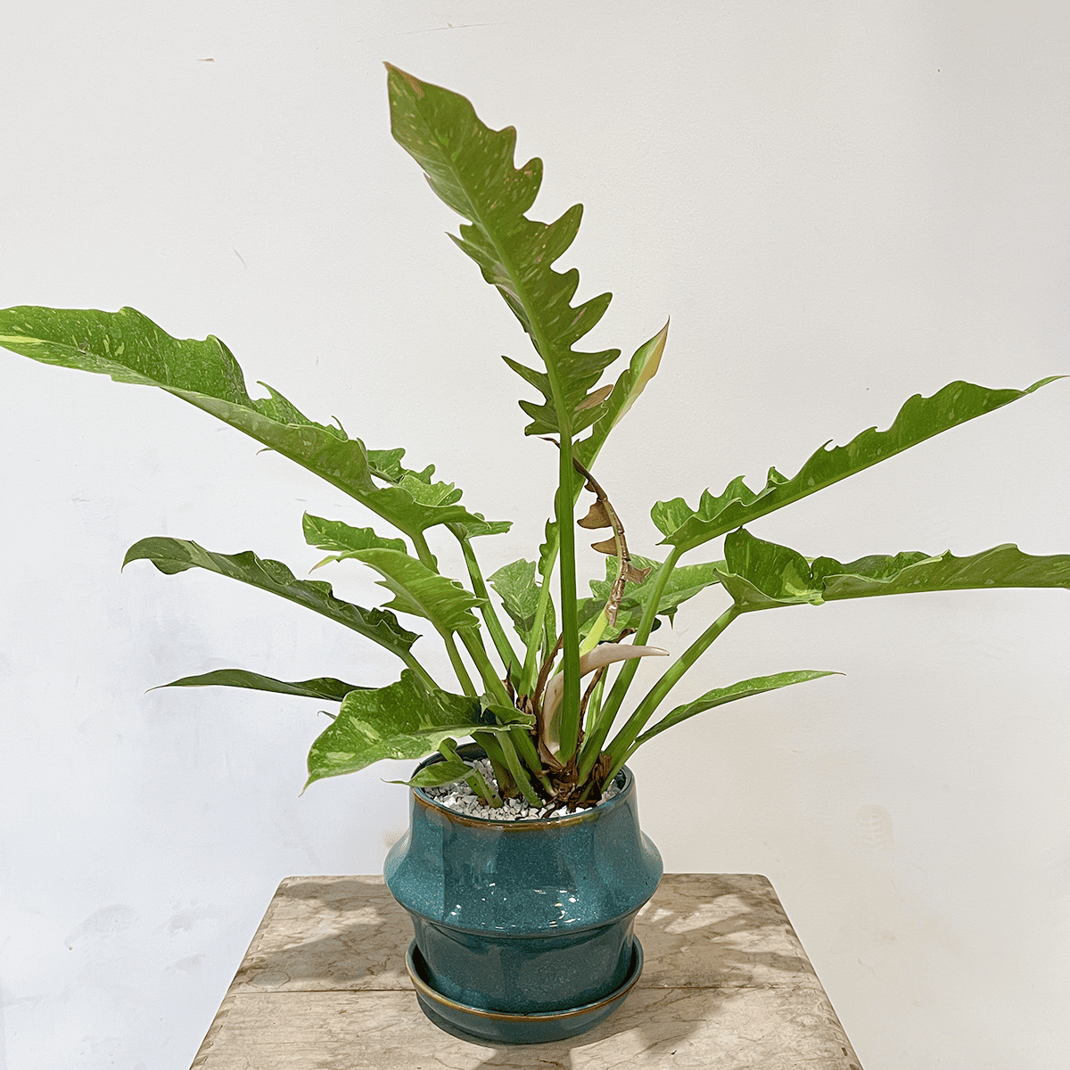 버킨은 필로덴드론의 일종으로 초보자도 안심하고 기르는 관엽 식물입니다. 잎 전체에 하얀 줄무늬가 들어가 크기보다 눈을 끄는 우아한 존재입니다.