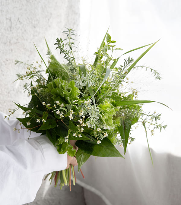 あなたのその優しい想像を、わたしたちも心に描きながら花を束ねます。
