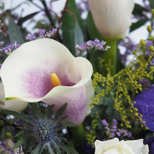【メイン花材】カラー、ラン、トルコキキョウなど