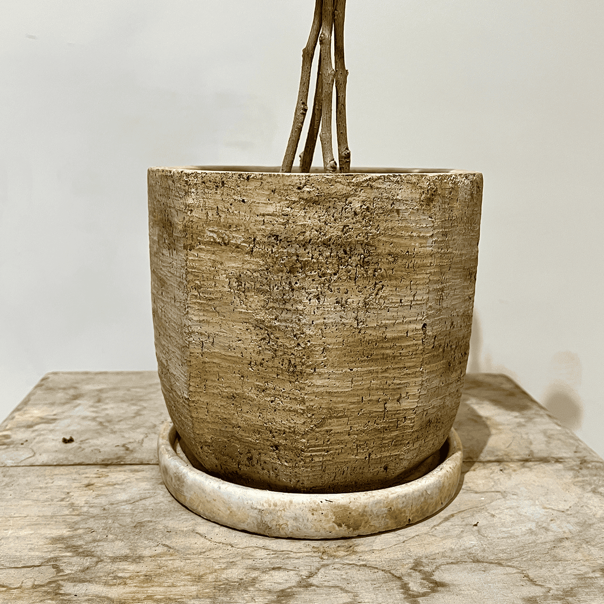 素朴な風合いのベージュ鉢が緑を引き立て、ナチュラルな雰囲気をそのまま楽しめます。