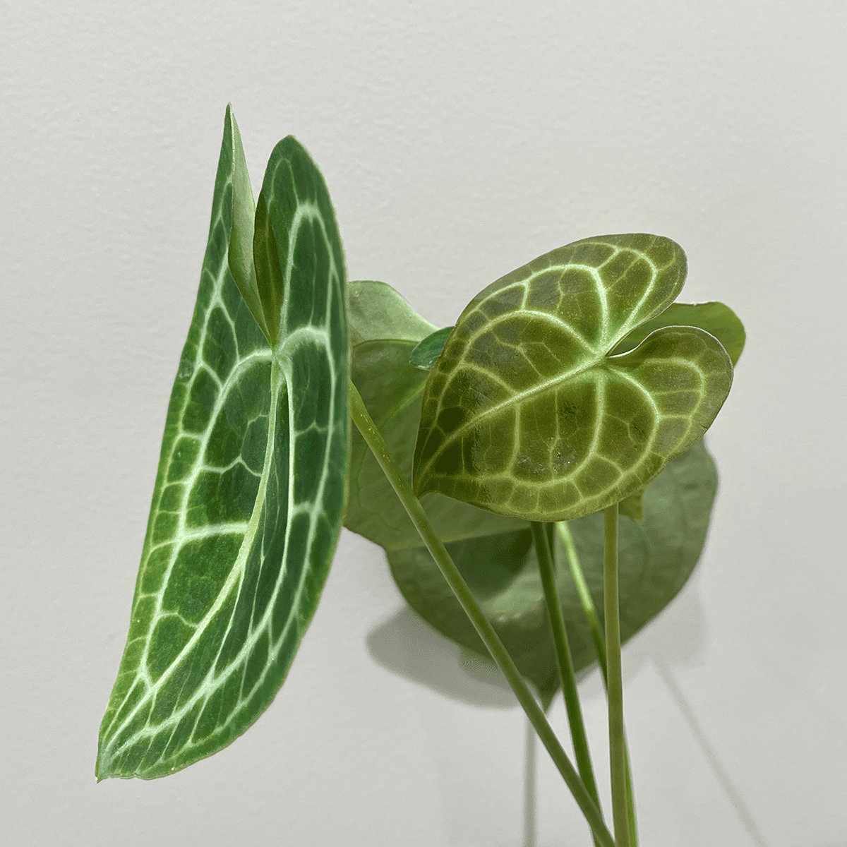 深みのあるグリーンの葉には、白く浮かび上がる葉脈がくっきりと走り、シンプルな中にも凛とした存在感を感じさせてくれます。