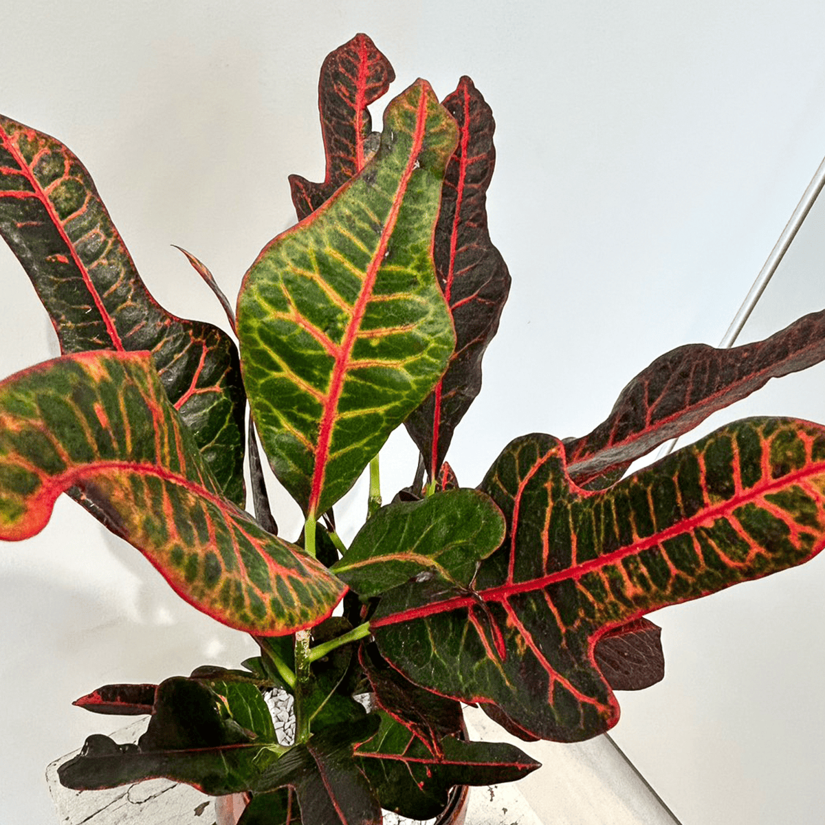 艶やかな葉に走る赤と緑のコントラストが、まるで絵画のような存在感を放つ「クロトン・エクセレント」。