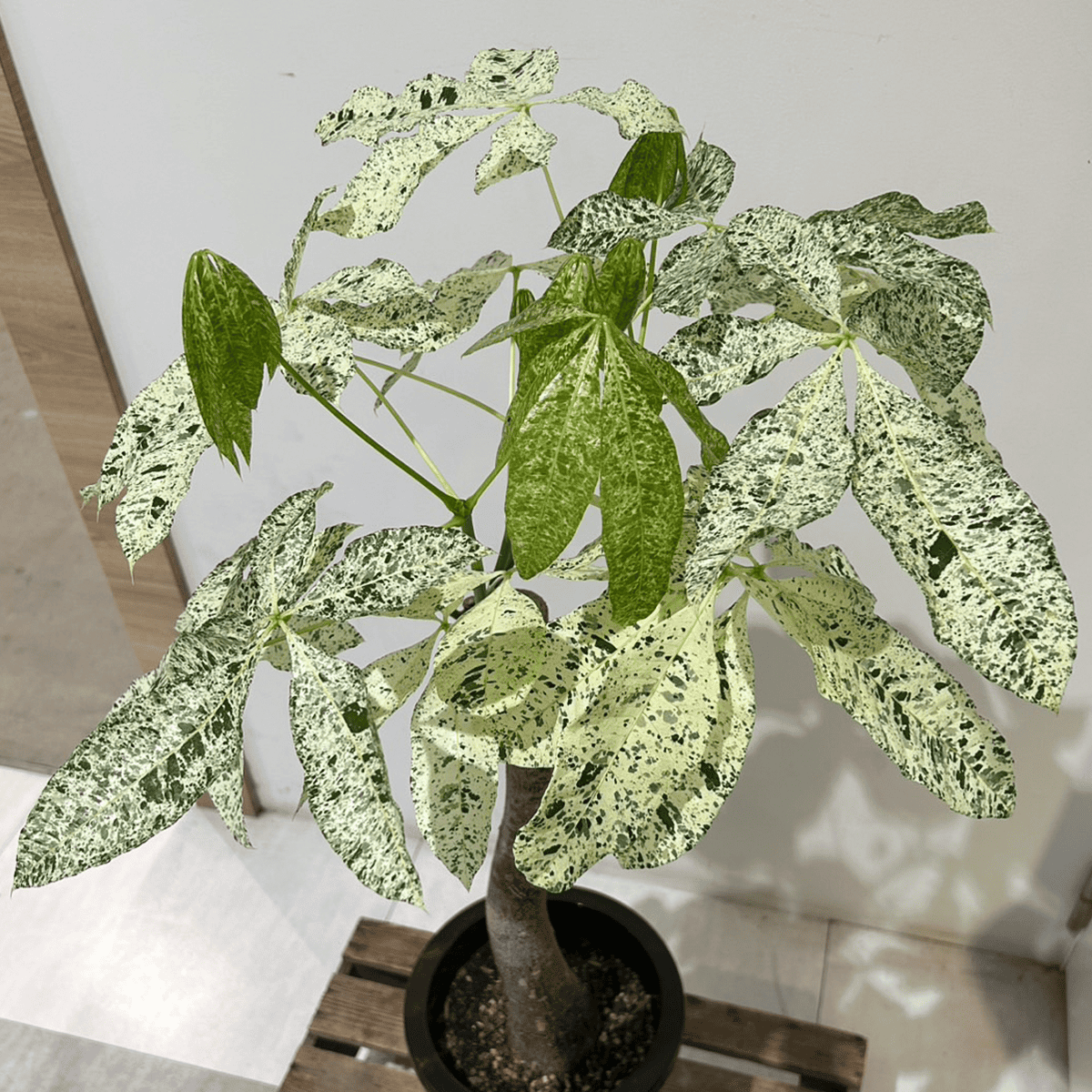 まだらの白い模様が目にまぶしいパキラの「ミルキーウェイ」。