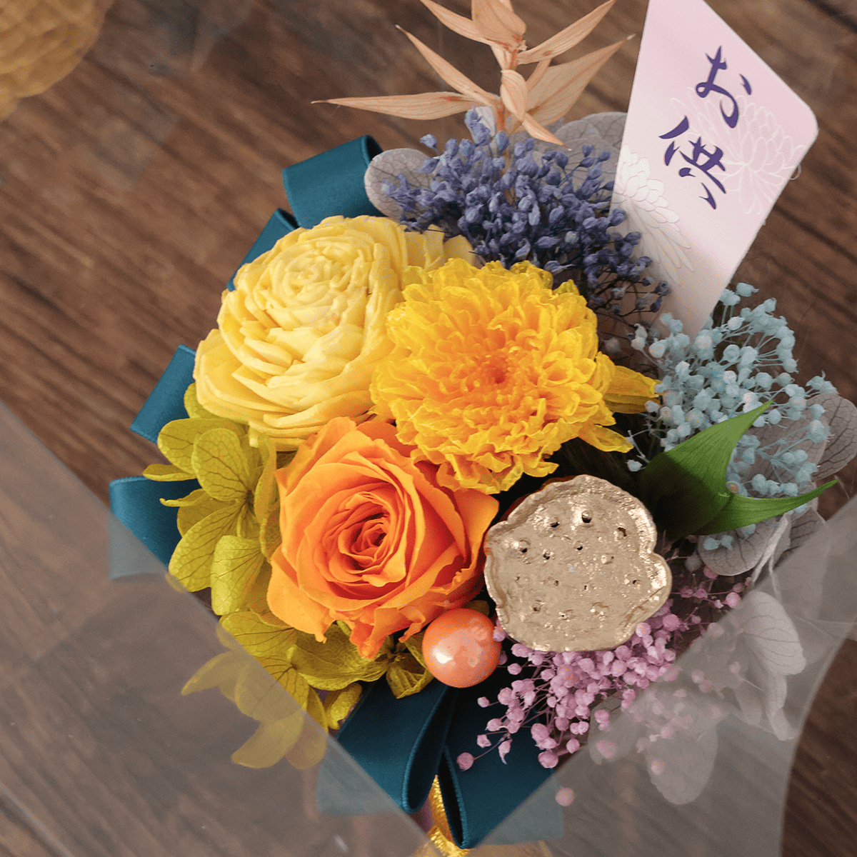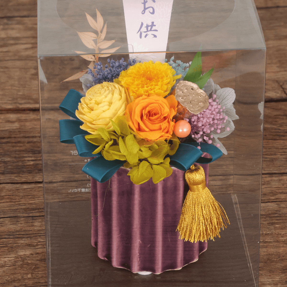 プリザーブドフラワーならではの美しさを長く楽しめ、ご自宅の仏壇やお供え花として、日々の感謝と祈りを静かに届けてくれます。
