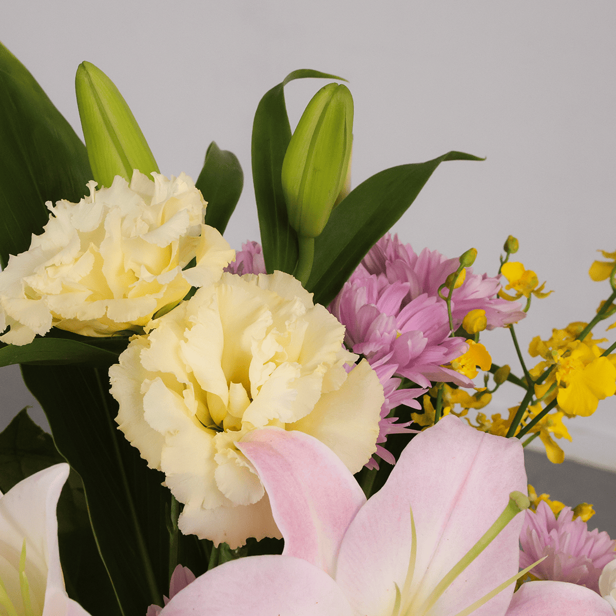 ユリ、スプレーマム、カーネーション、トルコキキョウ、オンシジウムなど