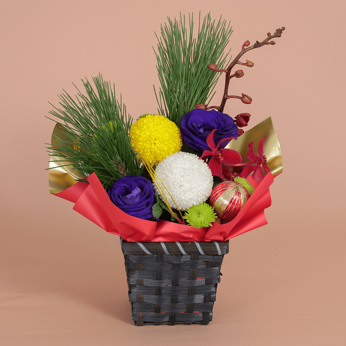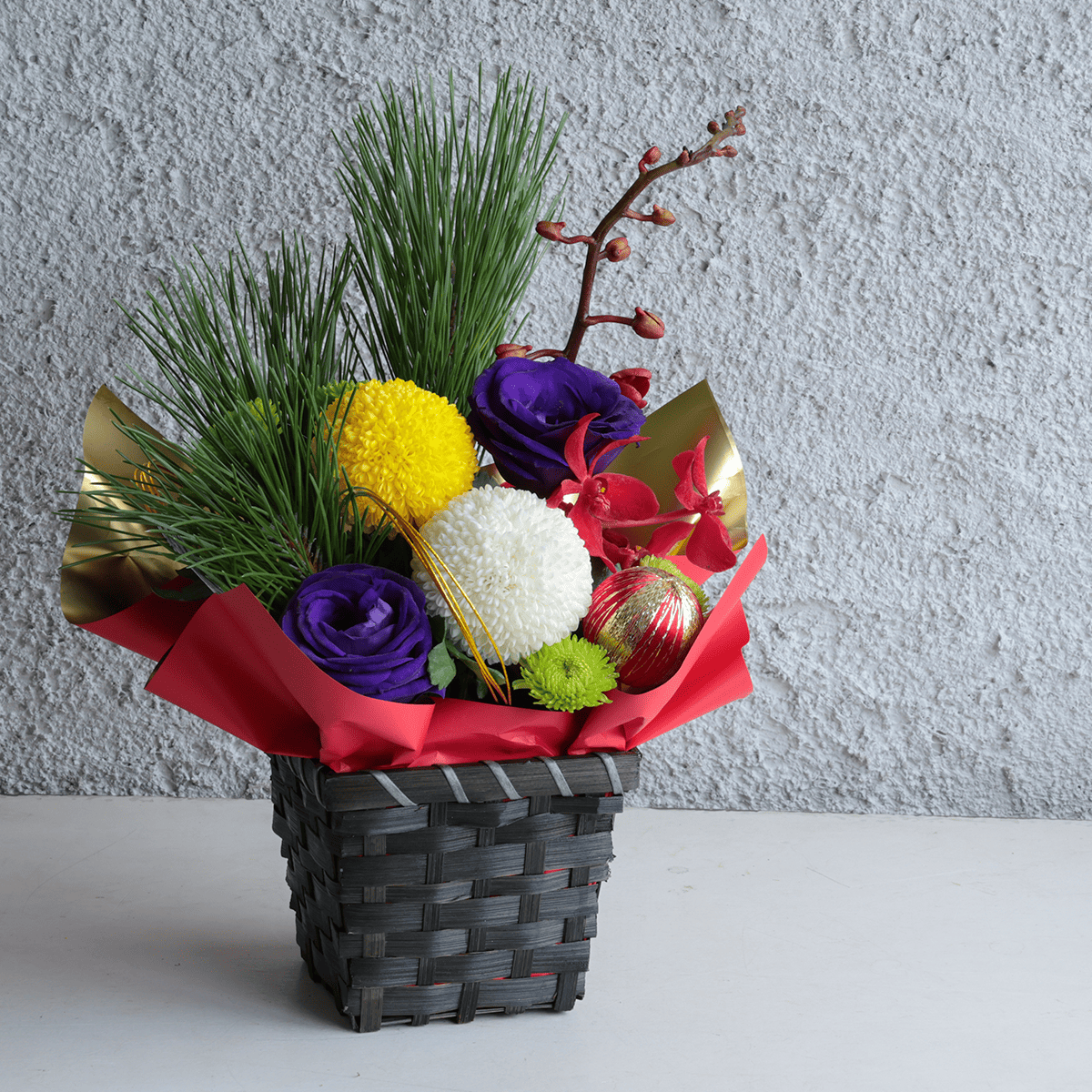 落ち着いた雰囲気の中に、心華やぐ新年の祝福を感じるアレンジです。