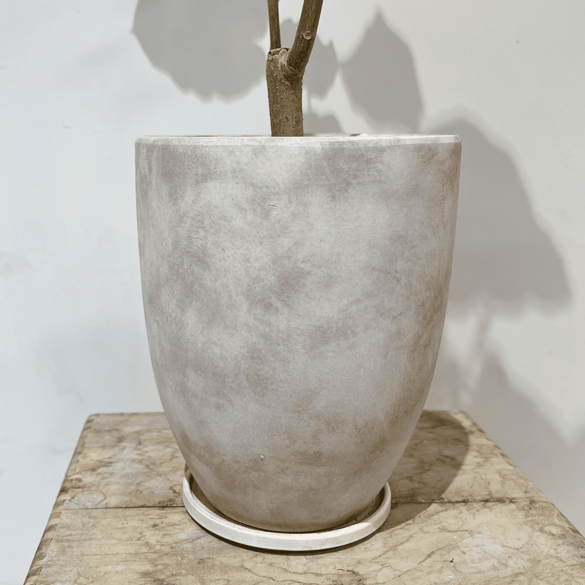 マットな質感の白い鉢が爽やかな印象を引き立て、モダン系からナチュラル系のインテリアまで幅広く馴染むデザイン。